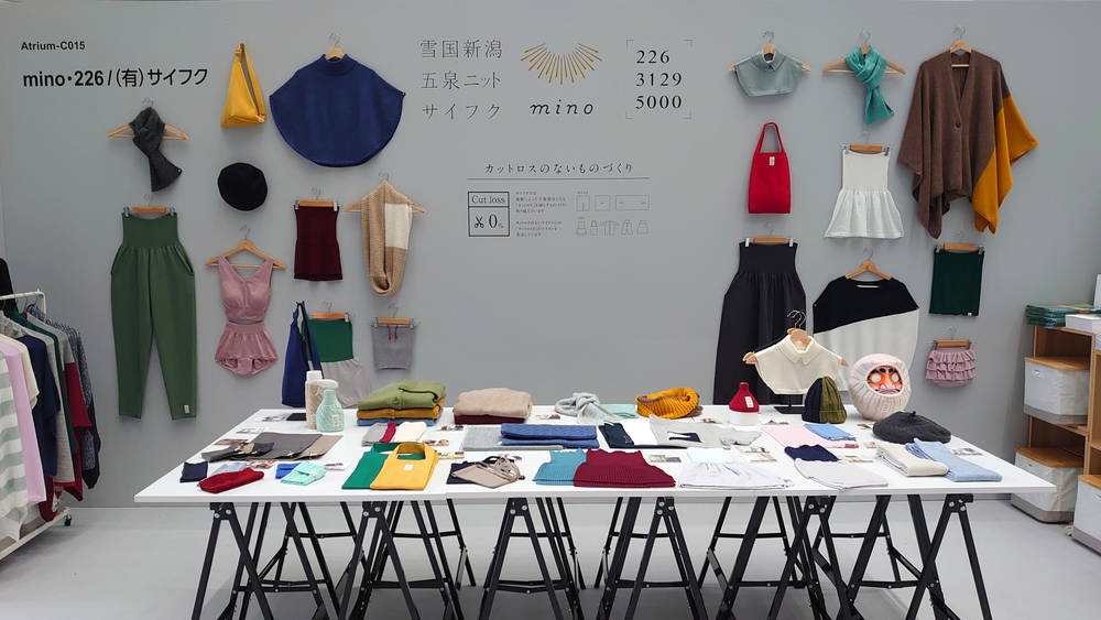 「mino」は雪国の防寒着から着想を得たニットポンチョのブランドで、「226」は身体やインテリアなど、いろいろなものをニットで「つつむ」アイテムを提案しています。