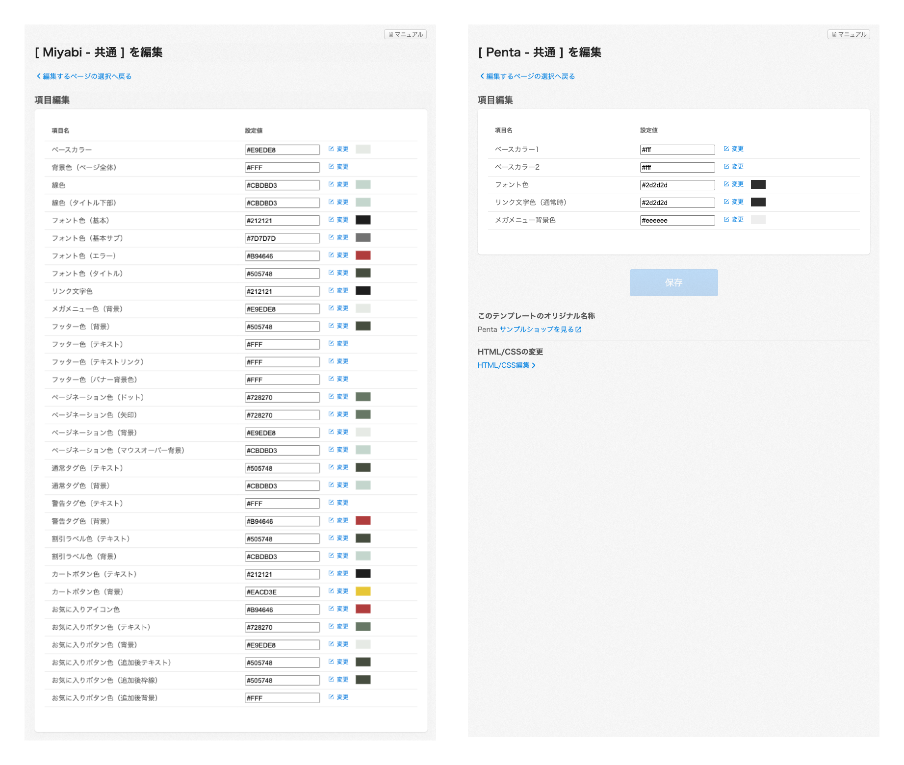 カラー設定が反映される箇所については、サンプルショップ内「項目編集の編集方法」をご確認ください。
