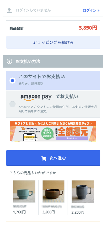 下記のキャンペーンバナーのいずれかがカート画面内に自動表示されます。