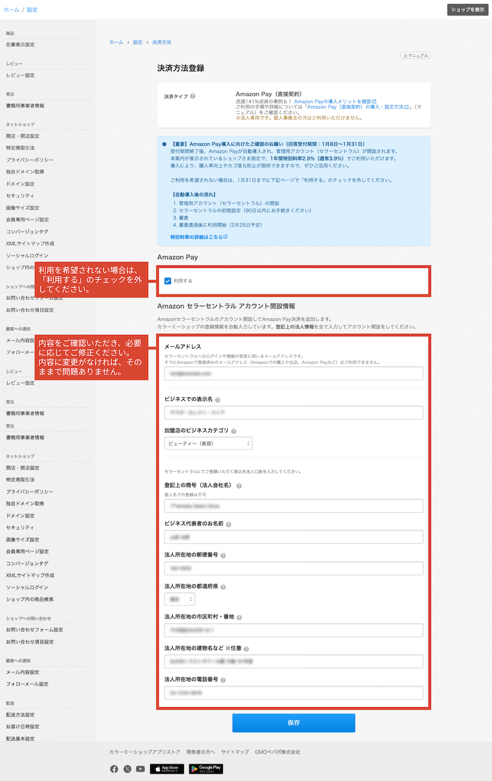 なお、Amazon Payの利用を希望しないショップオーナーさまは、2026年1月31日(土)までに「利用する」のチェックを外してください。