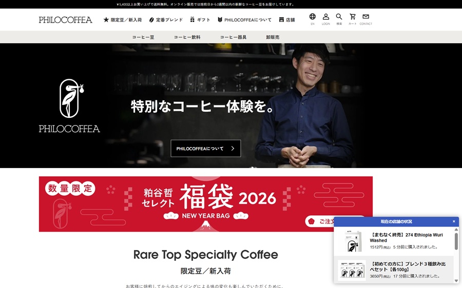 千葉県を拠点に実店舗を展開しながら、ECサイトでは焙煎日から2週間以内の新鮮なコーヒー豆を全国に届けています。