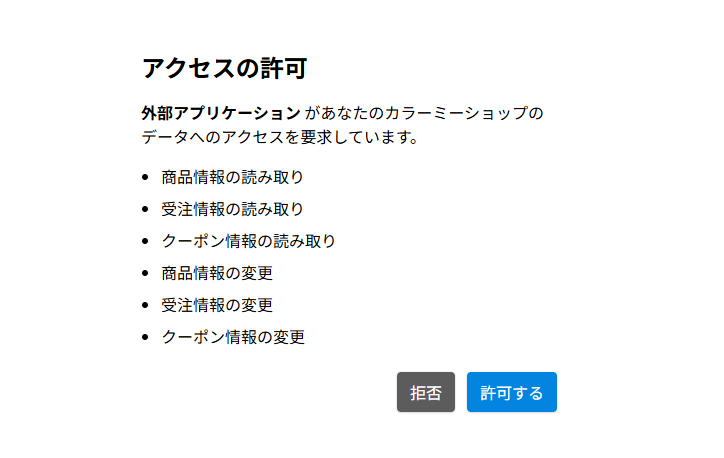 「カラーミーショップ AIコネクター」は、OAuth認証による安全なデータ連携のもと情報取得・更新を行えるようになっているので安心です。