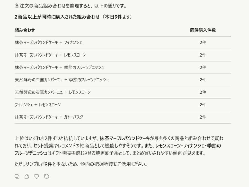 こんなふうに、よくある合わせ買いのパターンや傾向を教えてもらえました。